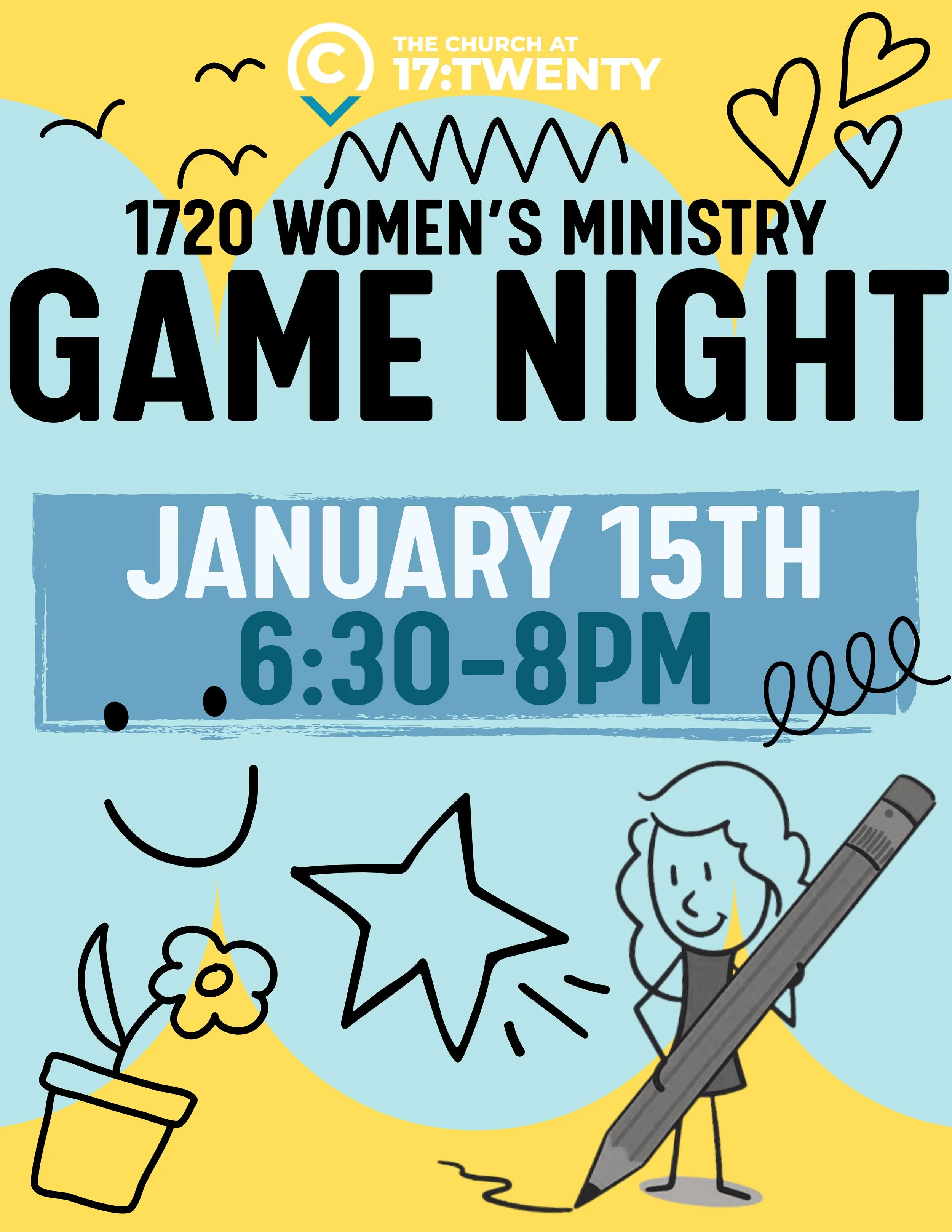 Back to All Events 1720 Women's Ministry Game Night Thursday, January 15, 2026 6:30 PM 8:00 PM Google Calendar ICS